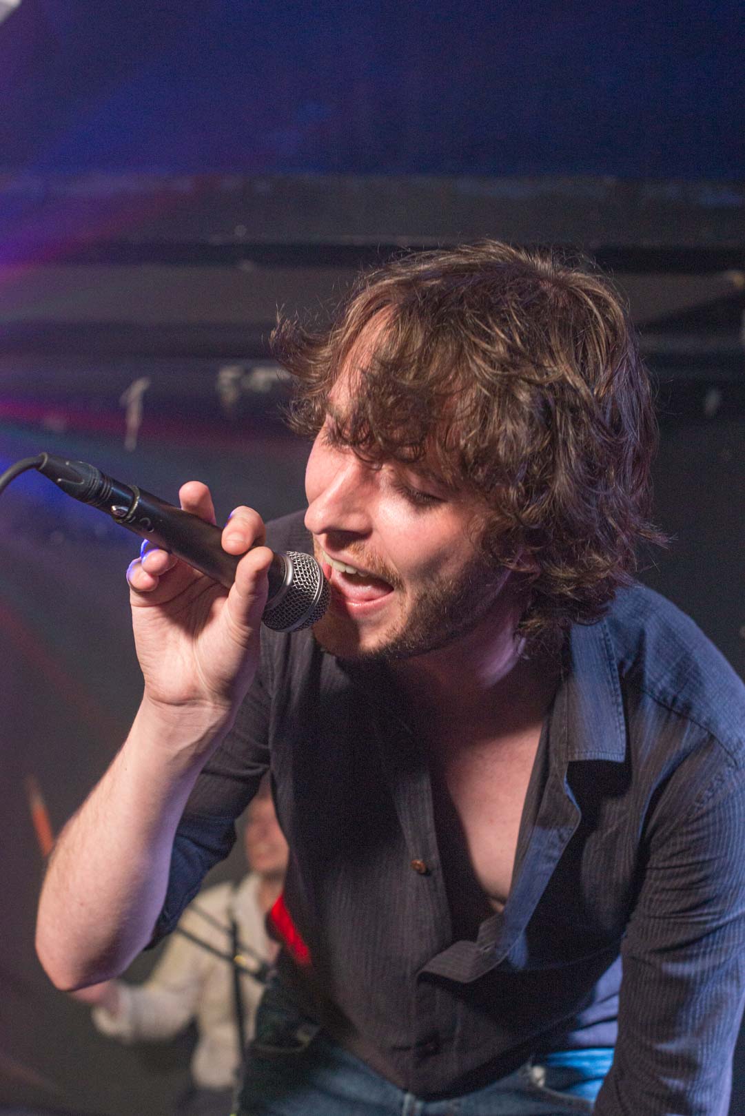 He introduces me to his bandmates and suggests we get a quick picture of the band before the next band starts playing. I had considered taking them up to the infamous Peer Hat alleyway but as it was pissing it down I opted for the green room behind a long floor-to-ceiling curtain.